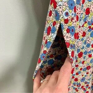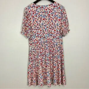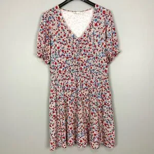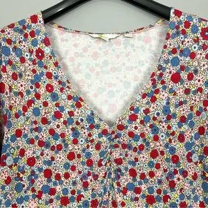 Boden V-Neck Jersey Dress Women’s Size 16 Riviera Blue Floral Stretch Knit Retro