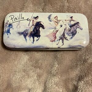 Gregory Perillo “chief crazy horse” watch. Collectible in tin and has certificate of authenticity