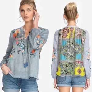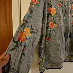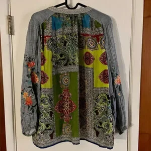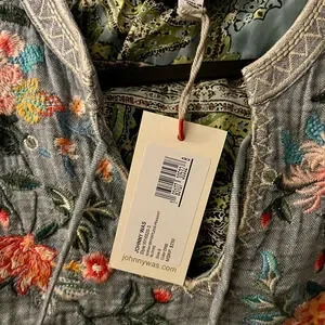 Size S NWT Johnny Was Norah Effortless Peasant Blouse. Bust 23.5”, length 25”. Has a tiny pull on the sleeve that is unnoticeable but worth mentioning. Shown in pics.