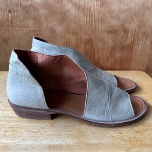 Free People Mont Blanc Asymmetrical Open Toe cut out Leather flat Sandal Gray