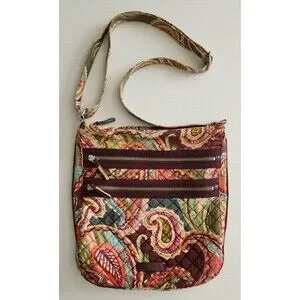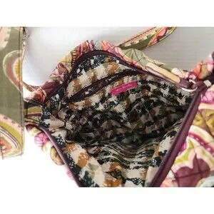 Vera Bradley Quilted Boho Crossbody Bag Green Pink Paisley Adjustable Strap