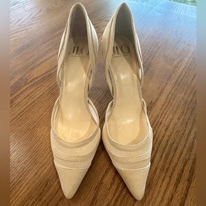 Jennifer Lopez nude/ beige Mandrea D’Orsay pump stilettos- NWOT