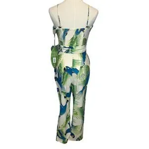 Farm Rio Women's Sleeveless Jumpsuit Parrots & Palms Print Size S