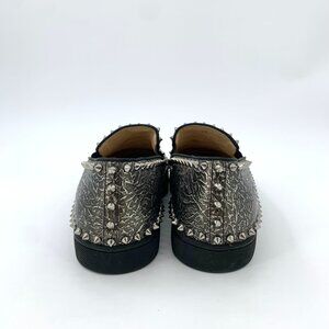 Elevate your style with these Christian Louboutin slip-on shoes, featuring an edgy leather design adorned with spike studs. Perfect for making a bold statement.