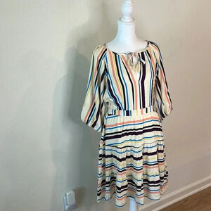 LOST + WANDER REVOLVE CORY Cream Blue STRIPED Boho MINI DRESS