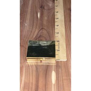thin, 2.5" x 2" open with ruby glass miniature button.