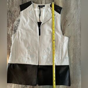 Lamarque Goat Suede / Leather Vest Light Grey with Flower Design Loose Fit
