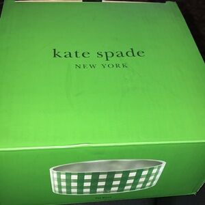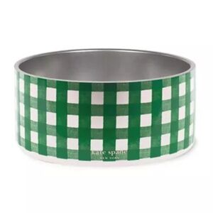 Kate Spade Large Stainless Steel Dog Bowl - Green Gingham Pet Bowl NEW