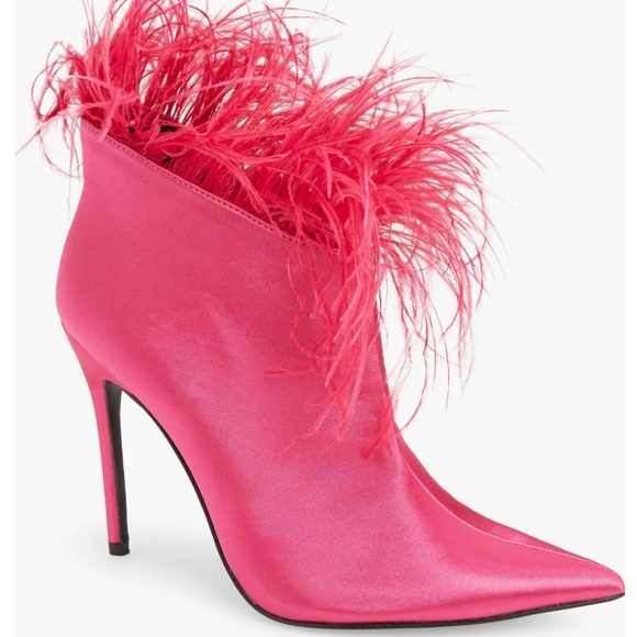 Brand New/ In Box/ Azelea Wang Kaylynn Ostrich Feather Pointed Toe Bootie