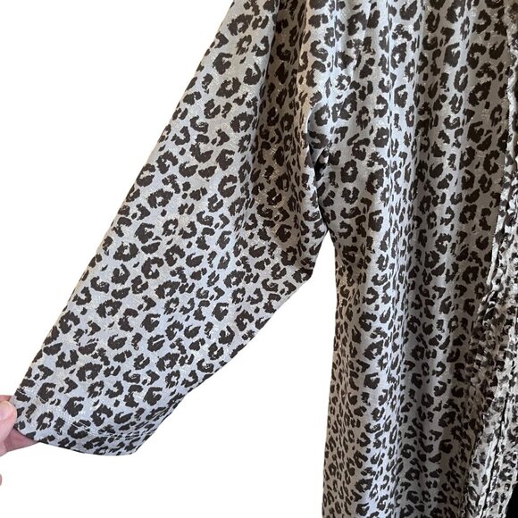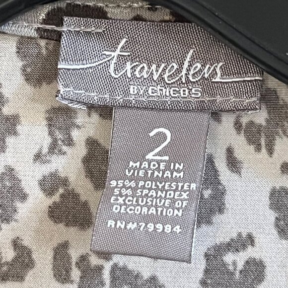 Vintage Y2K vibe, Chicos Travelers brown spotted cheetah print slinky jacket and shirt size 2 / large. Made with Acetate & Spandex for stretch, the shirt is made in the USA.