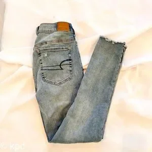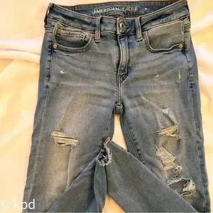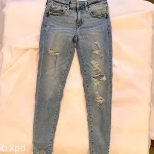 Pre-owned women's distressed/ripped next level stretch jeans/jeggings from American Eagle in size 6. From a smoke free home.