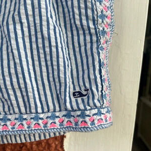 Vineyard Vines Blue White Striped Seersucker Embroidered Shorts Girls Size 16 XL