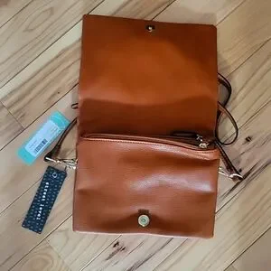 NWT Street Level Demi Fold Over Vegan Leather Crossbody Bag Tan