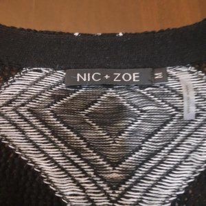 Nic + Zoe Size Mediu Boho Geometric Knit Cardigan Black and White Waist