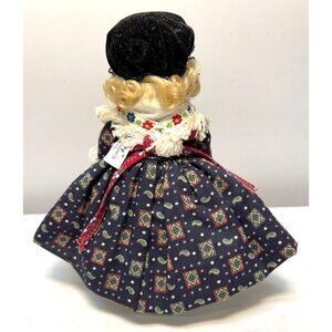 This charming vintage Madame Alexander doll represents traditional German attire, showcasing exquisite craftsmanship and attention to detail. The colorful dress and lace accents give it an authentic and nostalgic feel. The doll comes with its original box, offering collectors and enthusiasts a piece of doll-making history.