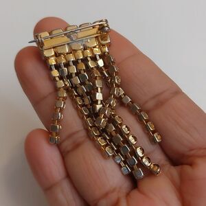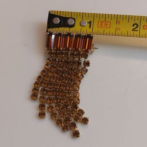 Stunning Vintage Unsigned Goldtone Topaz Colored Rhinestones Deco Dangler Brooch/Pin