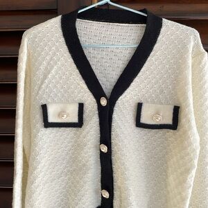 Boutique Off White/black Knitted Cardigan Pearl Buttons Fits M (8-10)