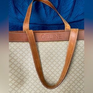 Vintage Canvas & Leather Trim Celine Macadam Tote