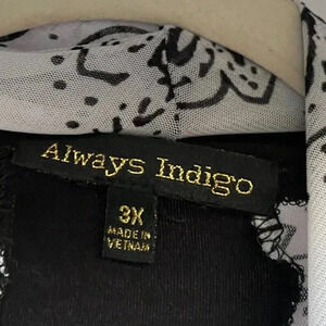 Always Indigo Size 3X Womens Sheer White Floral with contrasting black nylon fabric sleeveless Shrug