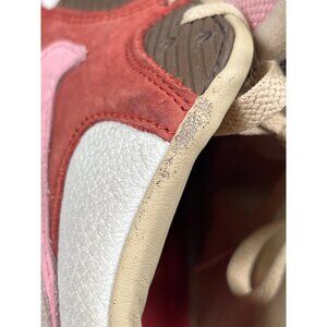 These Nike Air Max 90 "bacon" sneakers offer a stylish blend of leather and suede materials, providing durability and comfort. The multicolor design adds a vibrant touch, while the cushioning ensures a smooth step, making them suitable for various activities and casual outings.