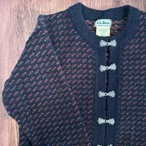 This warm and cozy vintage Nordic ski cardigan sweater by L.L. Bean is a gorgeous thick wool with a Scandinavian pattern.