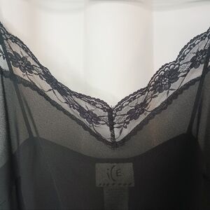 Vintage Y2K Ice Slip Dress Size 10 Lace Black Sheer Whimsigoth Feminine