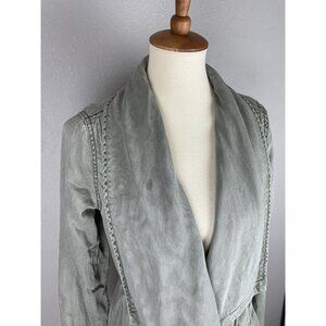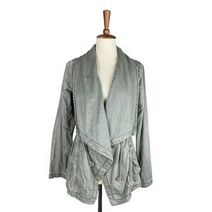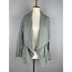 Max Jeans Military Jacket Size S Washed Olive Green Khaki Tencel Drape [STAIN]