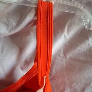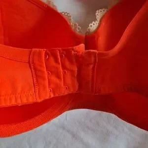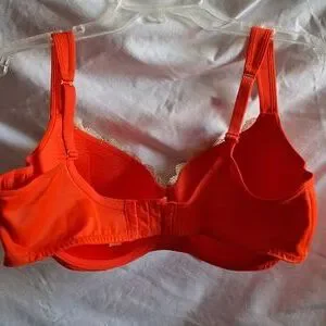 Lane Bryant Cacique Balconette Underwire Bra with side boning. color: Orange, more specifically, a Neon Tangerine Orange with tan or cream lace. 3 hook n eye closure (image). One inch strap for comfort. Worn once. U shapes back for ease and comfort. Adjustable straps. Perfect for those with wider shoulders to hold up straps.
