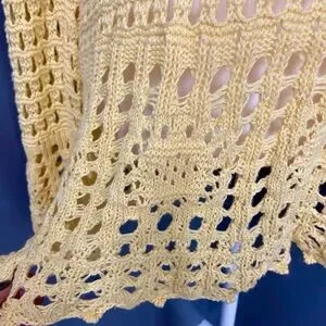 Women’s Crochet Yellow Long Sleeve Top Boho Beach Hippie Festival Fairy Y2K Sz M