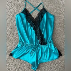 Victoria Secret Small silk teddy lingerie TWO aqua and pink
