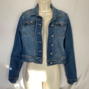 Mossimo Jean Jacket Womens Medium Trucker Cropped Blue Stretch Denim Retro
