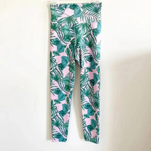 Beach Riot Piper high rise Leggings in Palm Pink and green size Medium