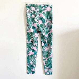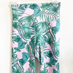Soft and stretchy high rise leggings with bright pink and green tropical palm leaf print. No flaws, great preowned condition