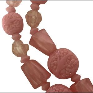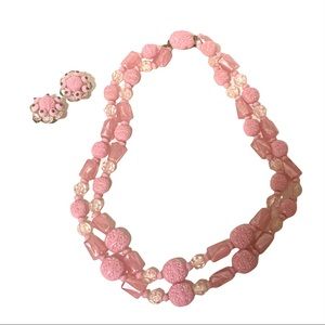 Sold/ 1950’s Double Strand Pink Beaded Necklace & Earring Set, Made in Austria