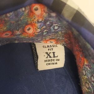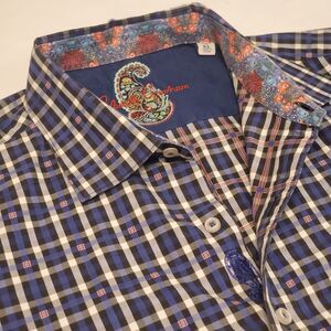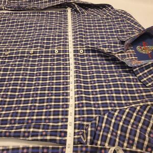 Robert Graham Mens XL Blue Plaid Button Down Shirt Long Sleeve Roll Cuff