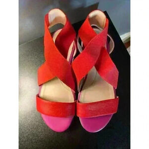 Cole Haan Grand Ambition Women 6.5B Red & Magenta Slingback Leather Sandal