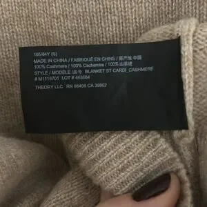 Tan Theory 100% cashmere cardigan. V-neck with braid detail, brown buttons, cropped length. Good condition - never worn. Theory size Small fits a US 2-4 per their website size chart.