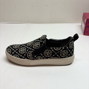 Tory Burch T Monogram Logo Slip-On Sneaker Black Chenille/Leather