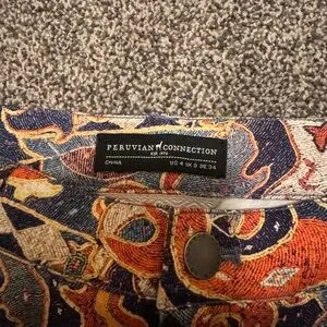 Peruvian Connection Paisley Red and Blue Pants Size 4