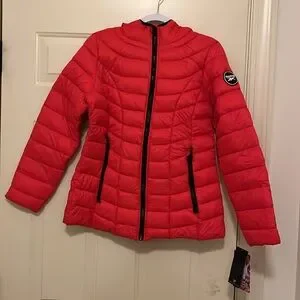 Reebok Womens Quilted Glacier Shield Red Jacket With Hood/NWT/M