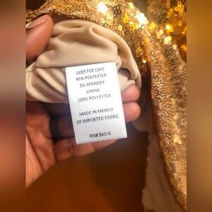 NWT Shimmer and shine in this stunning gold sequin skirt. Perfect for a night out or special occasion. Never worn, 95% polyester and 5% spandex. Elastic waist band, short slit up one side of the skirt.