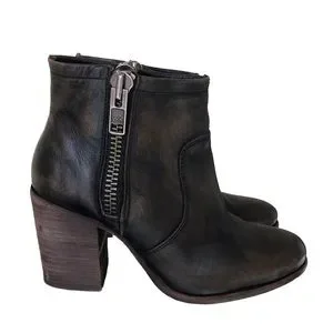 Hinge barris women’s distressed leather boots double zip heel ankle booties