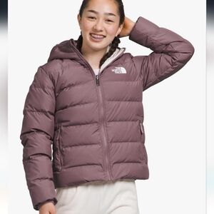 The North Face presents her versatile go-to for chilly days with this hooded down jacket. The warm jacket is updated with a warm 600-fill down insulation and features a reversible design.