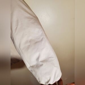 Reversible design; horizontal quilting on outer; logo at left chest and back; elastic binding on hood and cuffs