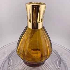 This Preloved Yellow Amber Color Lampe Berger is a glass lamp with feminine shapes and is a blend of sobriety and elegance