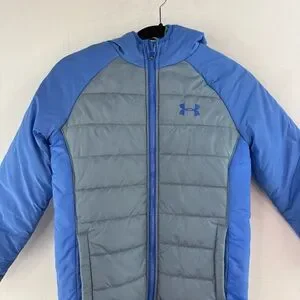 Under Armour Blue and Gray Youth Hooded Puffer Jacket Size M