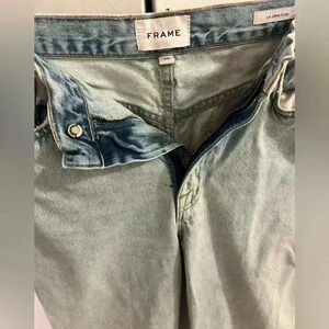 Frame Le Jane cropped jeans in a light wash. Mid rise with frayed bottoms. Very comfortable and great condition, only worn once.