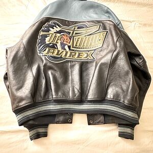 Stylish two-tone leather varsity jacket perfect for any occasion. Features a sleek design with contrasting colors for a bold look.