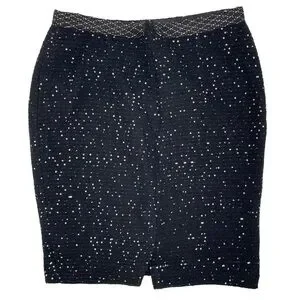 Lela Rose pencil skirt black sequin wool silk blend lined size 8 career event