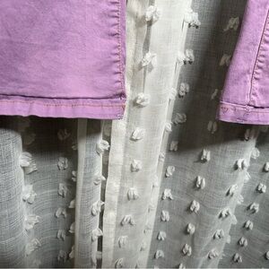 Farm Rio lavender Sailor Jeans. Size 29 no stretch. Hems have bee taken up and have some misperfecions see photos hemmed for 5’6” tall. Sold as is price reflects defects.